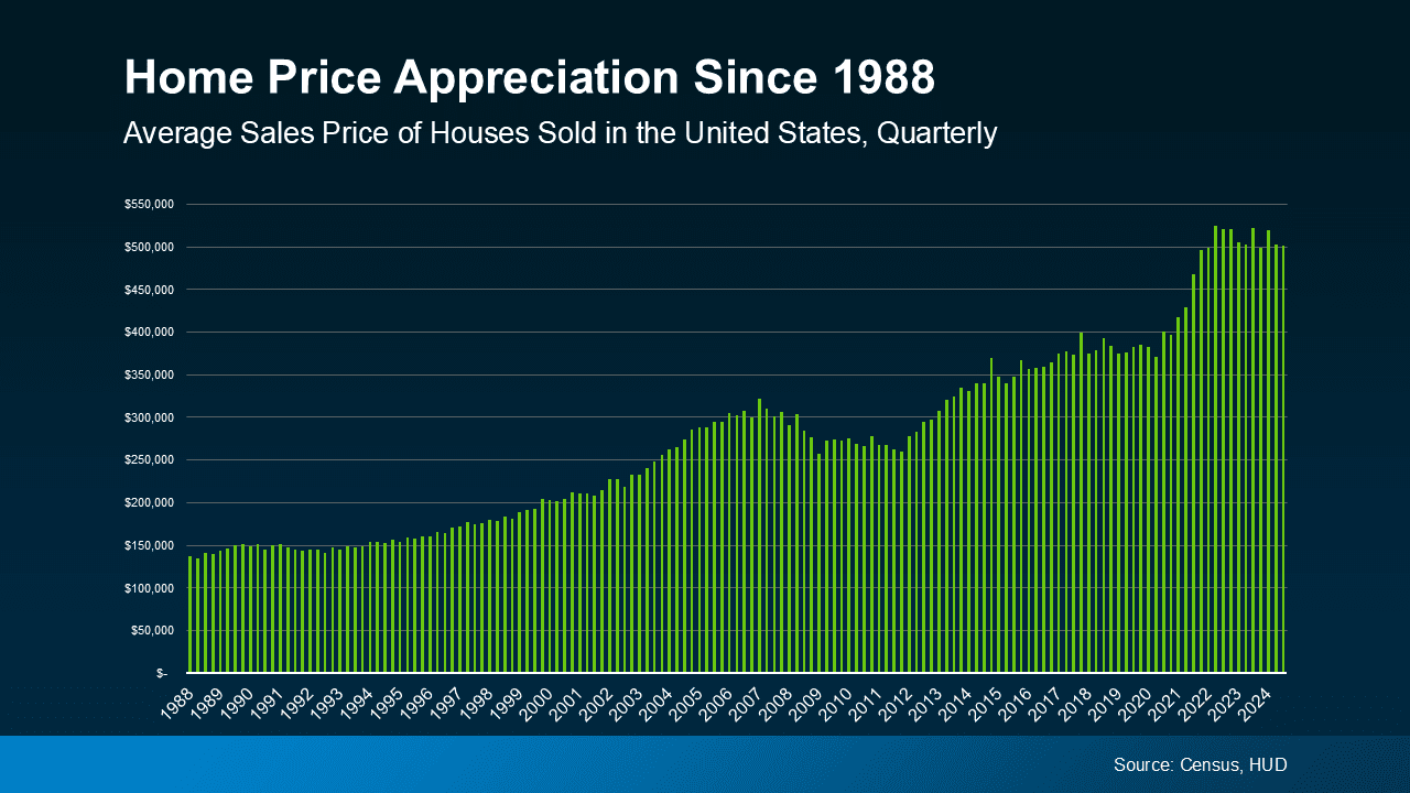 Buying a home allows you to turn your monthly housing costs into a long-term investment. That’s because, as shown in data from the Census and the Department of Housing and Urban Development (HUD), home prices tend to increase over time (see graph below):