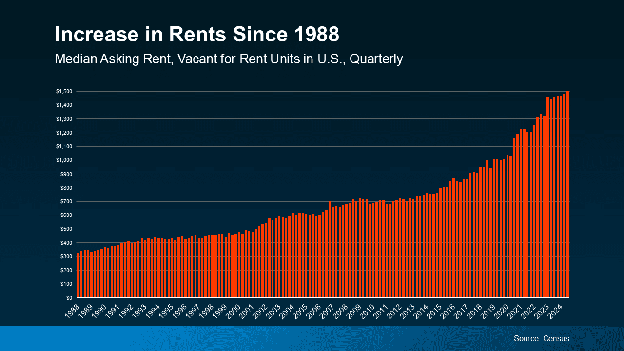 Renting may feel more affordable in the short term, especially right now with today’s home prices and mortgage rates. But the reality is, over time, rent almost always goes up too. Take a look at the data and you can see that play out. According to Census data, rents have significantly increased over the decades (see graph below):
